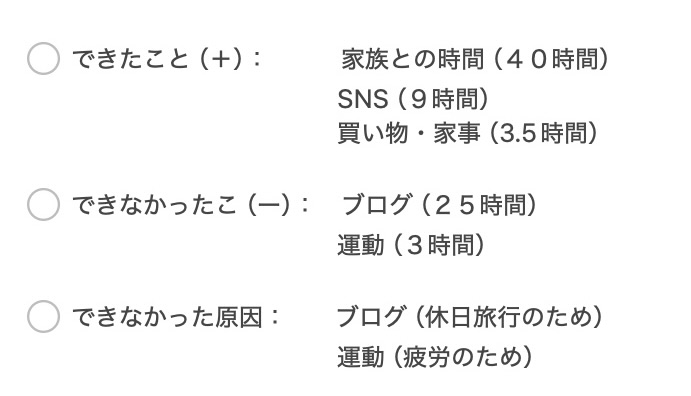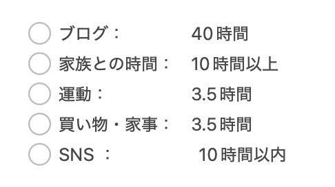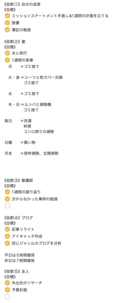 1週間は思ったより短いです。そのため、役割×3つの目標に絞りましょう。